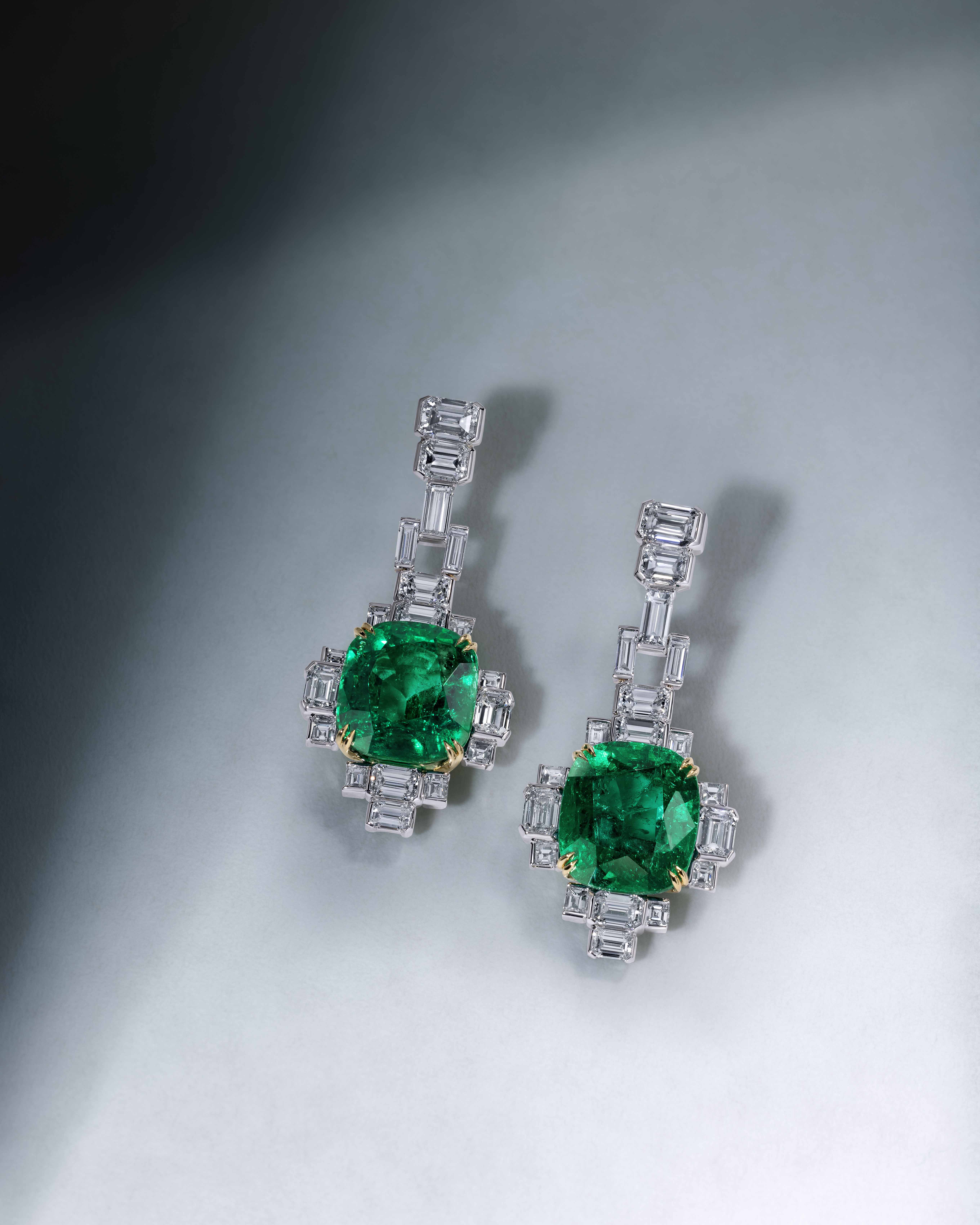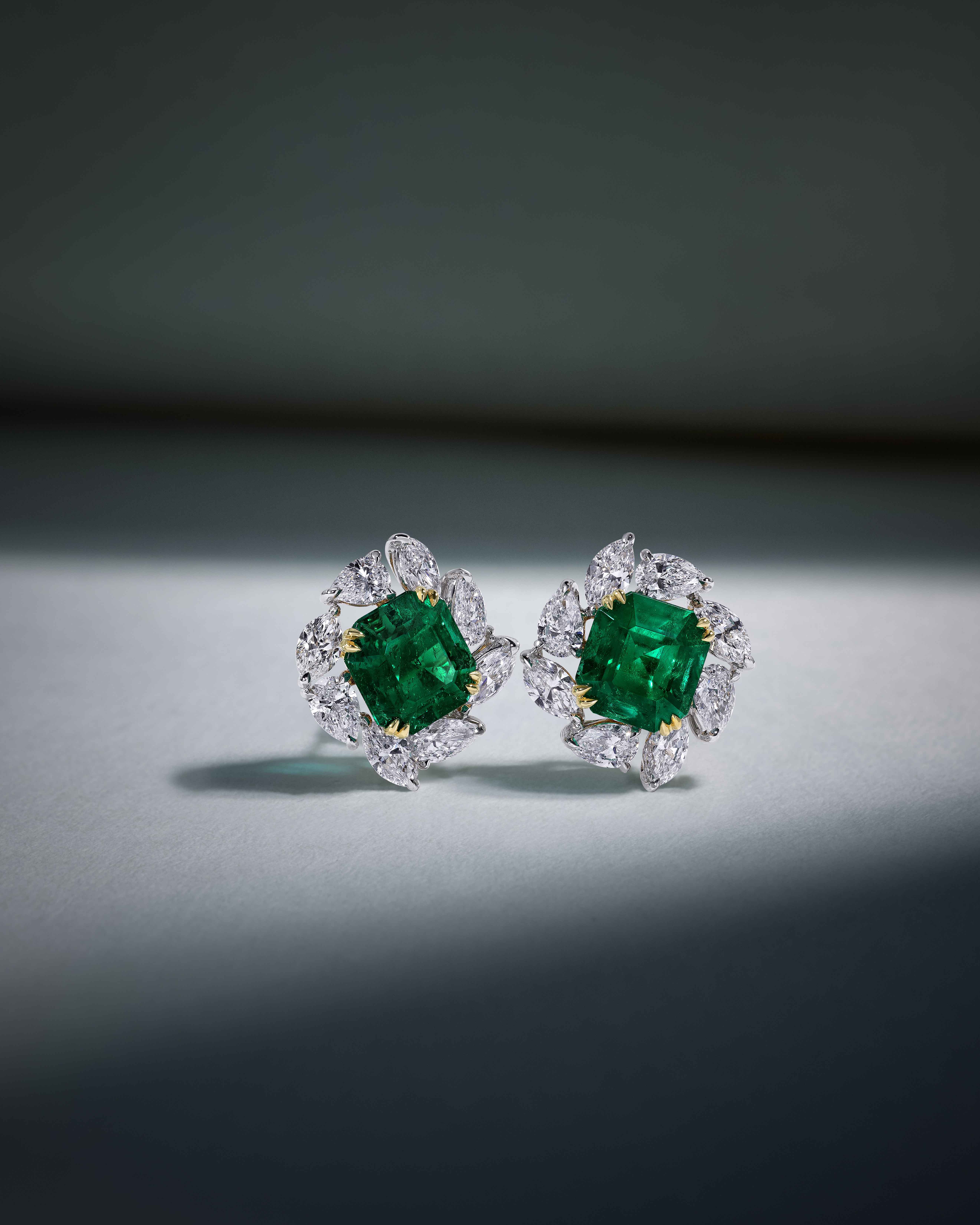 Vividly saturated emeralds of legendary colors reminiscent of emeralds varieties found in the world-renowned Muzo mines. Minor clarity enhancement.