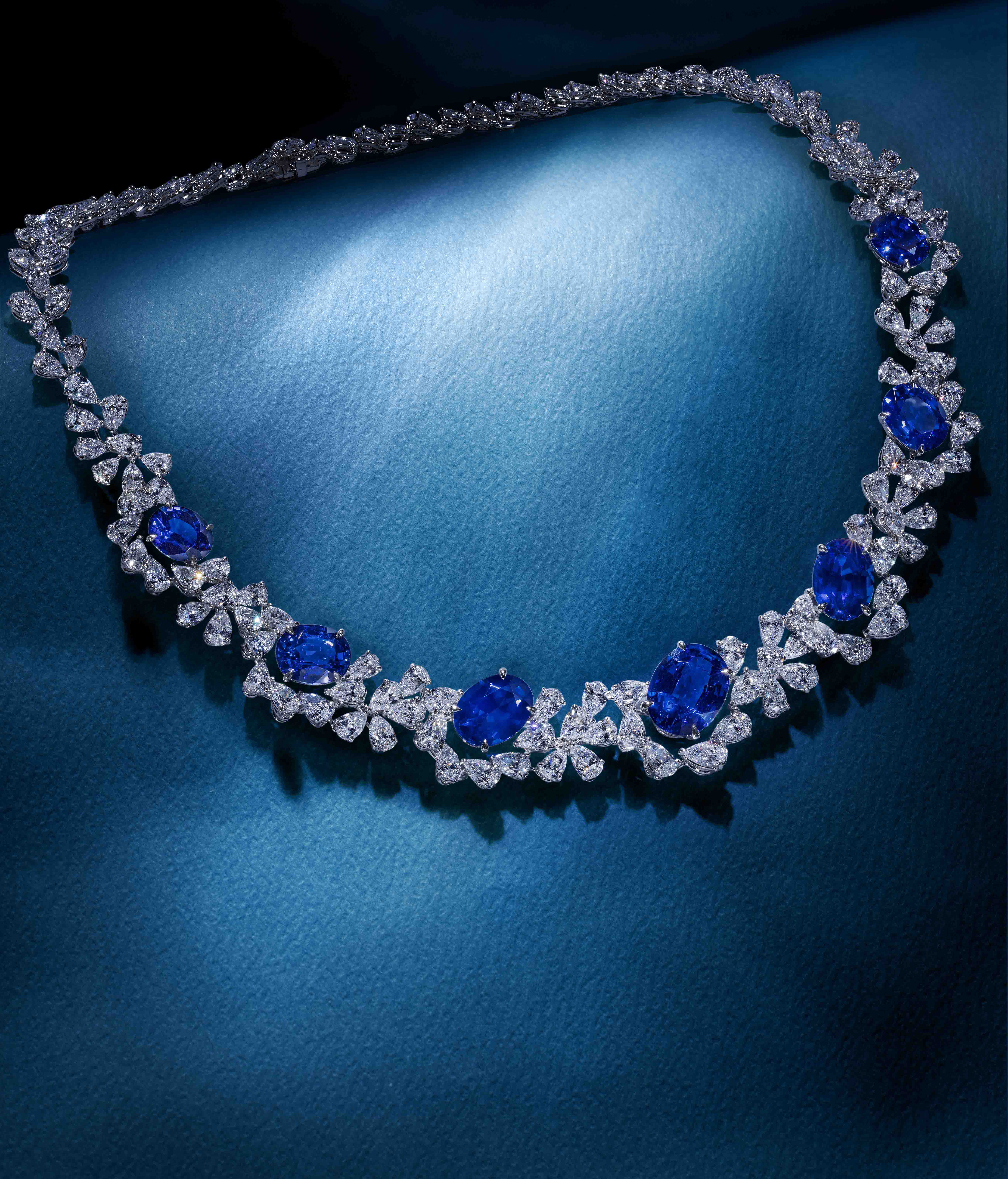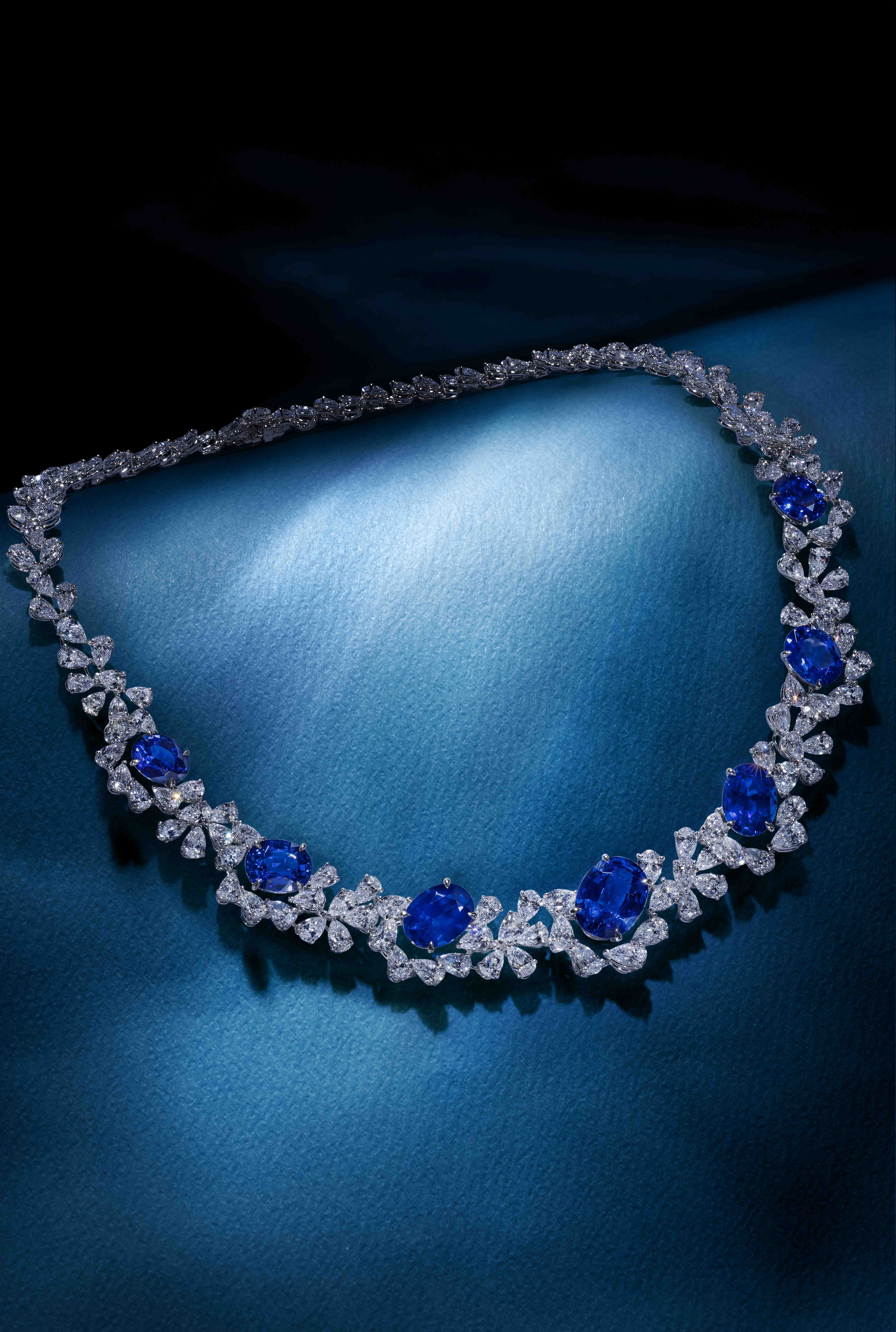 Graded among the finest shades of vivid blues, the “Royal Blue” sapphires of this necklace captivate in a beautiful flowing display.⁠ ⁠⁠⁠