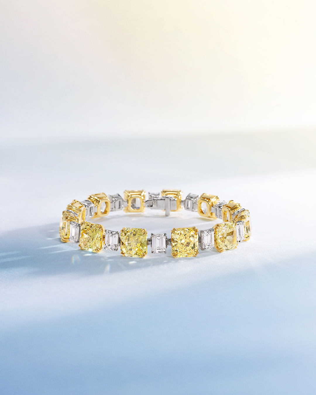 A striking statement. Fancy Yellow diamonds each of desirable clarity.   ⁠