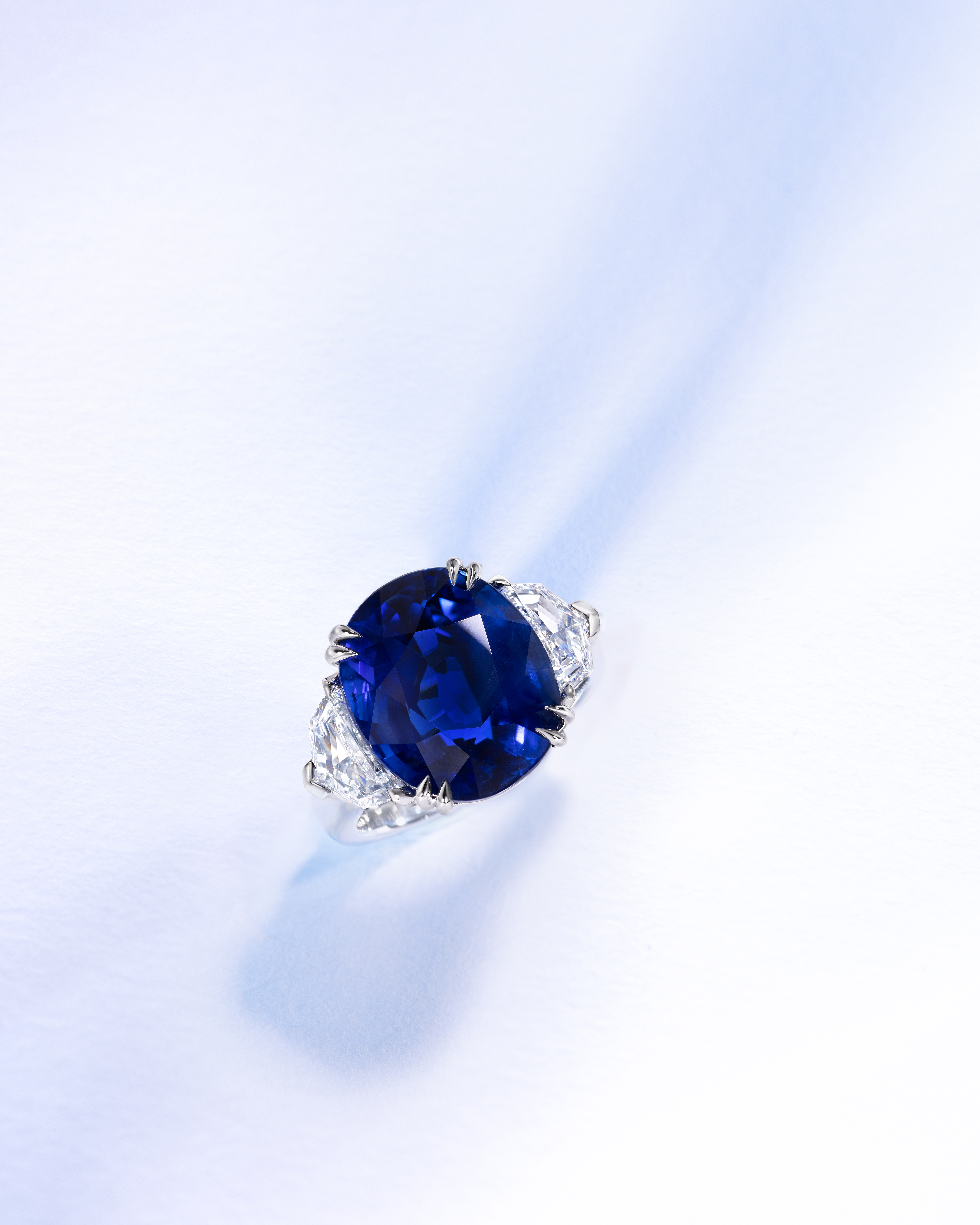 A striking sapphire lead. With half-moon diamond companions, together they unite in a minimalist design for the discerning wearer; a prized Royal Blue Burmese sapphire over 13 carats, without heat enhancement.⁠  ⁠